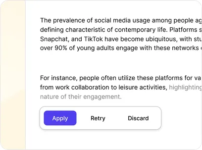 - Using AI commands to expand, improve, or add citations to specific paragraphs, you can write naturally in our editor.