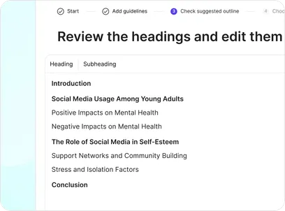 Litero AI can suggest an outline for your text. You can customize and build on it to guide your future research and content creation.